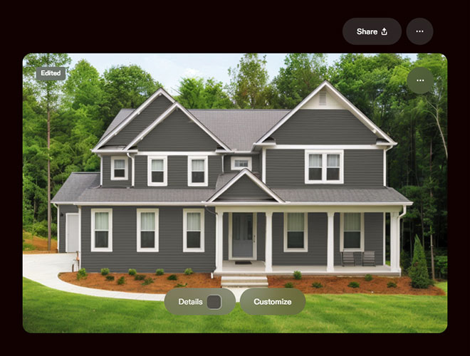 Upload photos of your home or choose a home from our sample library to instantly explore and customize vinyl siding, colors, styles, and trims to find your perfect look.